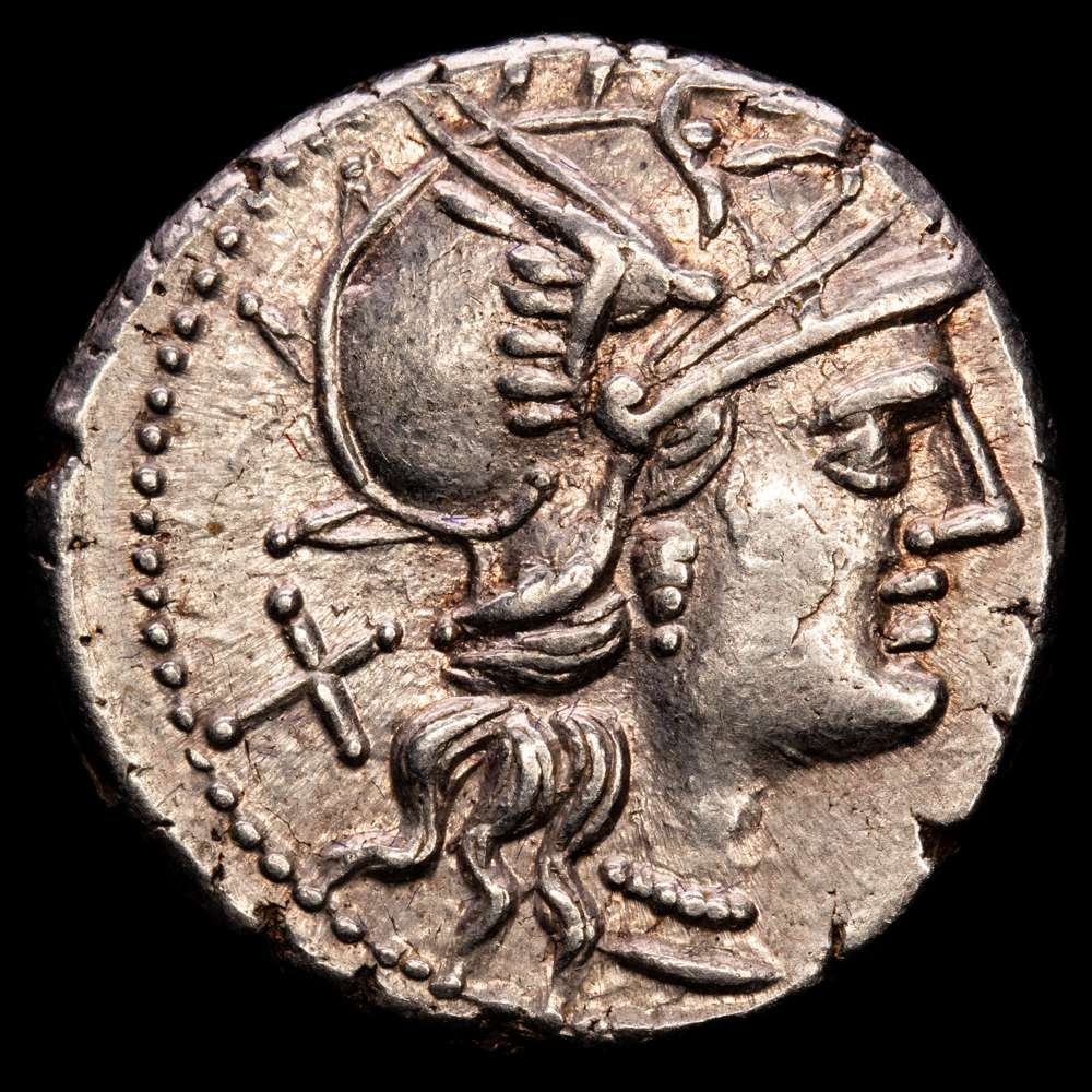 Valeria. C. Valerio Cf Flaco. Denario. 140 aC Roma. (Ffc-1163). (Craw-228/2). (Cal-1320). Anv.: Cabeza de Roma a derecha, detrás: X. Rev.: Victoria con látigo en biga a derecha, encima: FLAC., debajo: C. VAL. CF, (VAL entrelazadas), en el exergo: ROMA. Ag. 3,84 g. XF. Ligera pátina.