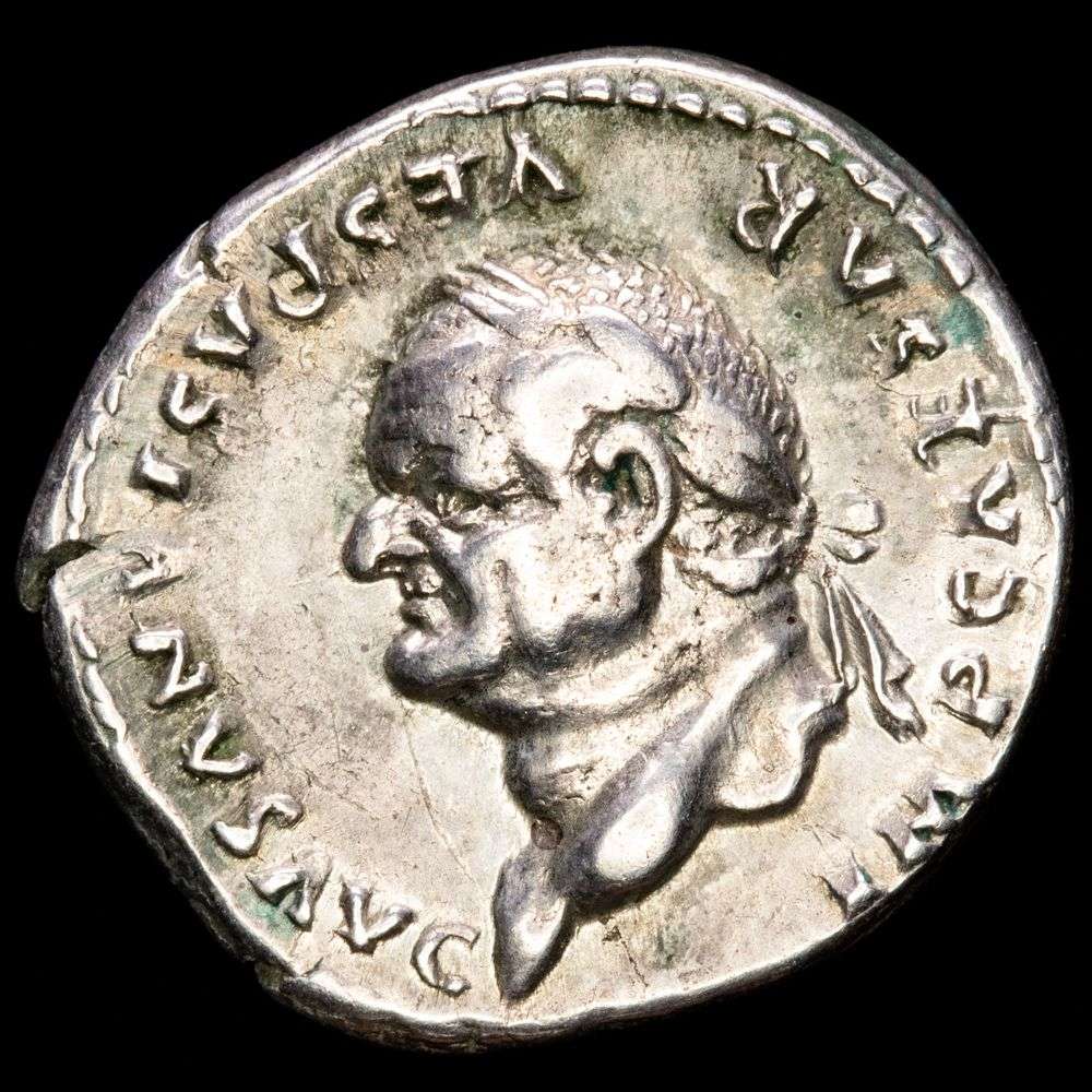 Vespasiano. Roma. Denario. 69-79 d.C. (Spink 2293) (S. 216) (RIC. 980). 3,41 gramos. Bella pátina de monetario antiguo. XF.